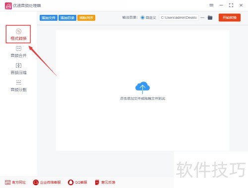 1、 首先启动软件,点击左侧的格式转换功能,可将包括amr在内的二十多种音频格式转换为mp3,操作简便,兼容性强,满足多样化音频处理需求。