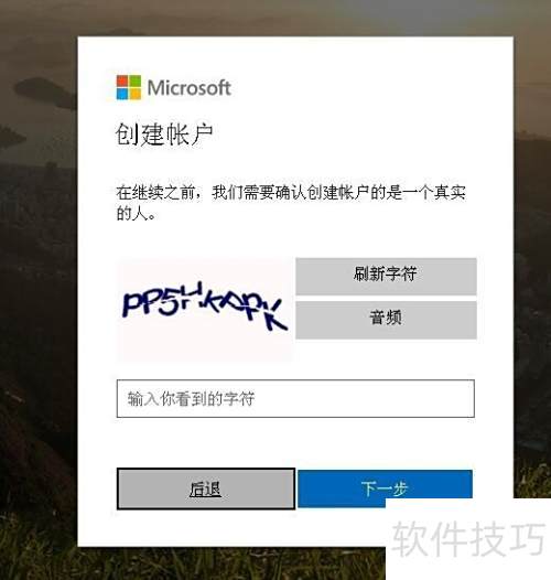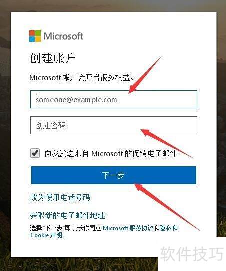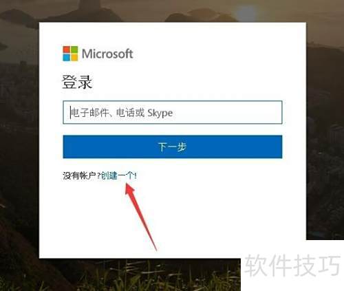2、 进入登录页面后,点击底部蓝色文字创建一个,弹出注册窗口,填写邮箱,设定密码,随后点击下一步继续操作。