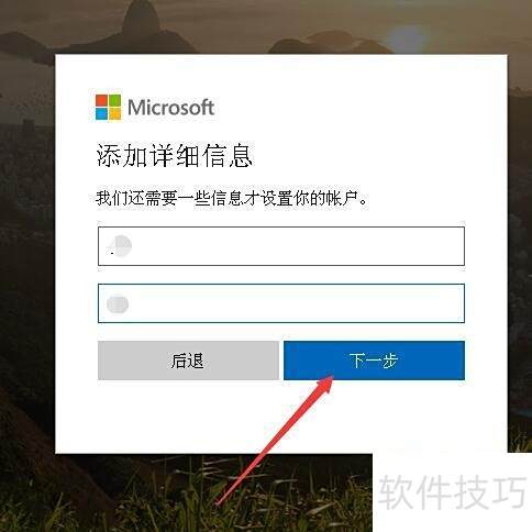 3、 弹出添加信息窗口后,依次填写姓氏和名字,然后点击下一步继续操作。