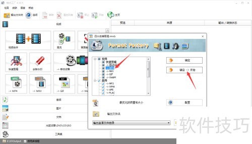 4、 弹出格式转换设置窗口后,选择目标格式,点击确定-开始按钮,即可启动转换过程。
