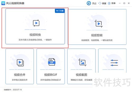 3、 启动软件主页面,选择视频转换功能,进入处理界面。