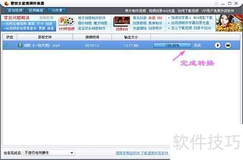 5、 转换后可清晰查看整个进度,若需调整MP4格式设置,可点击右下角取消按钮,根据提示中断转换过程,系统将自动返回至视频转换主界面,方便重新配置参数并继续操作。