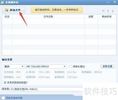 7、 导入需转换的webm文件,在输出设置中选择MP4格式即可完成转换。