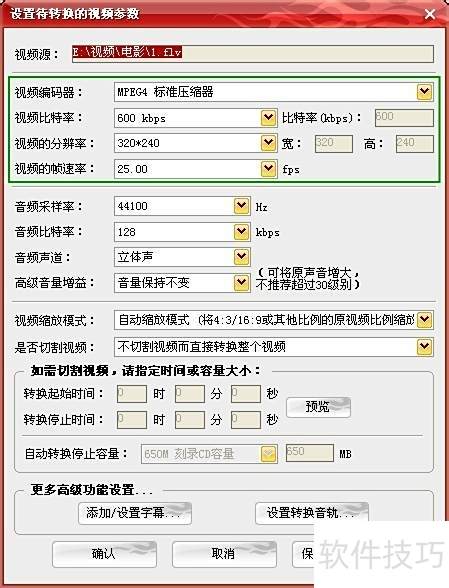 6、 在设置待转换视频参数窗口中,可依据设备需求,自定义MP4视频的编码器、比特率、分辨率等选项。若不熟悉相关设置,直接使用软件默认参数也能获得清晰的输出效果。此外,该工具还提供添加字幕、剪辑片段、调节音量等多种实用功能,操作简便,适合各类用户尝试使用,满足多样化的视频处理需求。