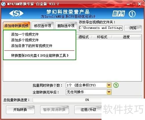 2、 点击添加待转换视频按钮,可一次性导入多个F4V格式文件。该软件支持高效批量转换,兼容MP4、RM等多种格式,转换速度快于同类工具,输出画质清晰,兼顾效率与品质。此外,内置的DVD全能转换功能还可直接读取并转换DVD光盘内容,满足用户多样化视频处理需求。