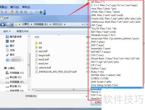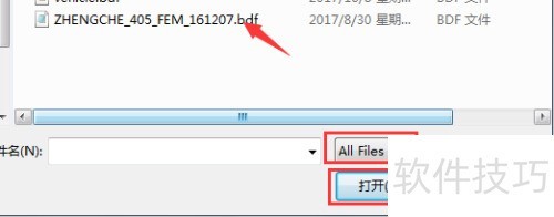 3、 此时会弹出文件选择窗口,支持多种文件格式,选择所有文件选项,即可显示并选取任意格式的文件。