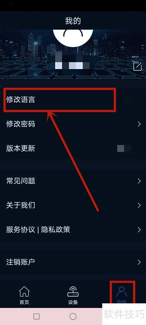 2、 进入我的页面,选择语言项目进行查看和修改。