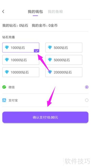 4、 选择所需钻石数量,点击微信支付完成付款,操作所示。