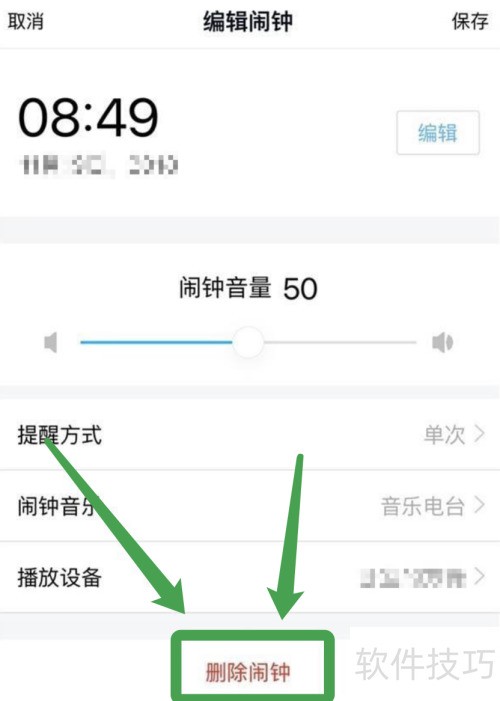 3、 进入闹钟设置,点击下方删除按钮即可。