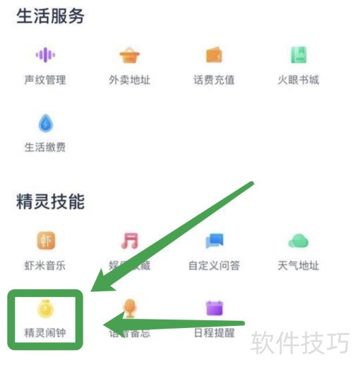 1、 打开天猫精灵,选择精灵闹钟功能。