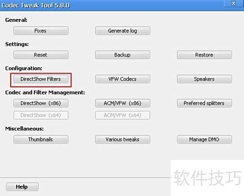 28、 在Codec and Filter Management中点击DirectShow选项。