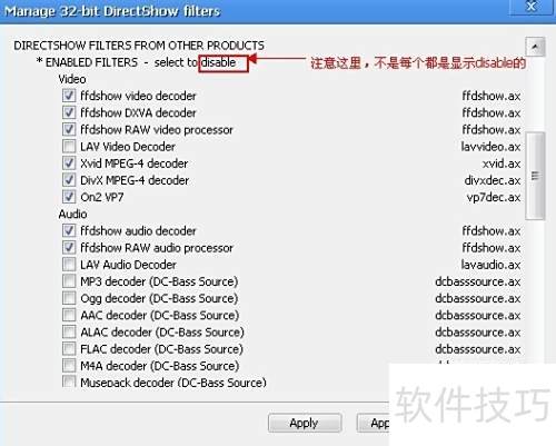22、 点击DirectShow Filters选项即可找到相应设置。