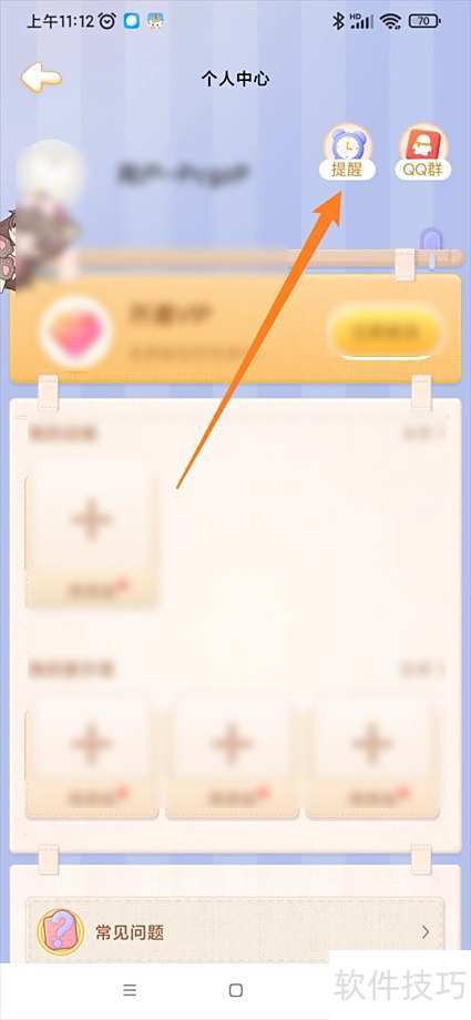 3、 进入个人中心,点击提醒选项。