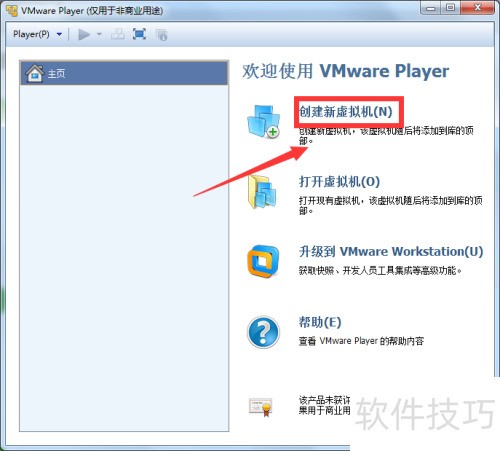 2、 安装完成后,启动VMware Player,点击界面右侧的创建新虚拟机按钮。