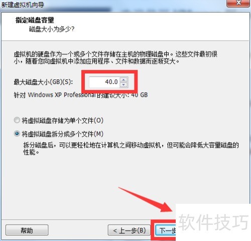 6、 按需设定磁盘容量(非即时占用),随后点击下一步继续操作。
