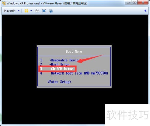 12、 进入启动菜单,选中CD-ROM……选项,按回车键确认。