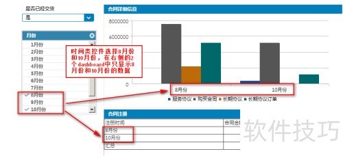 7、 时间类控件可绑定多个维度,用于数据筛选,支持在不同窗体中过滤多维度信息,提升统计分析效率。