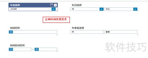 2、 时间类控件是数据统计分析软件中用于筛选时间数据的一种控件类型,仅支持时间类型的数据源。依据时间表现形式的差异,该类控件可细分为五种不同类型,便于用户按具体时间维度进行数据过滤与分析。
