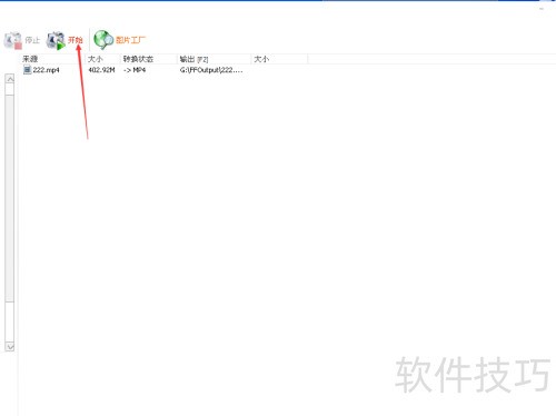 9、 点击顶部开始按钮,按箭头方向操作,格式转换随即启动。