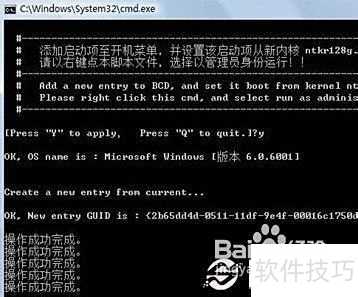 2、 解压后运行包内AddBootMenu程序,弹出对话框时输入Y并回车,系统将提示破解成功。请务必以管理员权限执行此操作,否则无法完成。