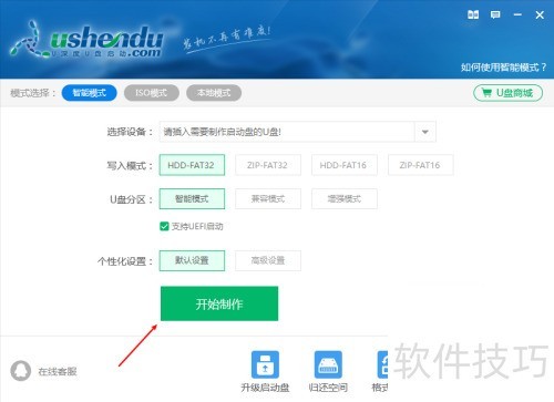 3、 插入U盘后打开软件,点击开始制作。