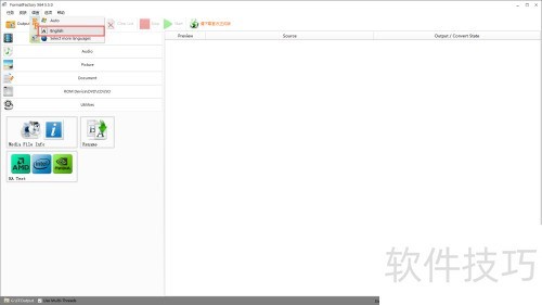 4、 点击语言选项,选择英文即可切换软件为英语模式。
