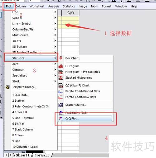 3、 选择数据后,依次点击绘图统计中的Q-Q图选项。