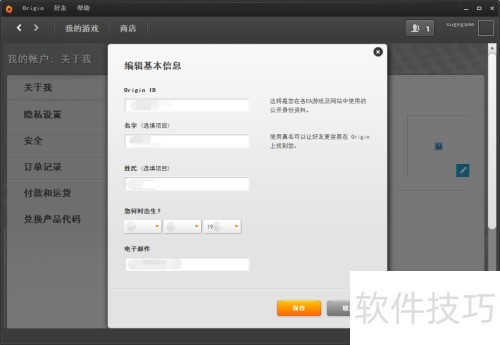 5、 进入编辑页面调整个人origin信息,可更改origin ID、姓名、出生日期及电子邮箱等内容。