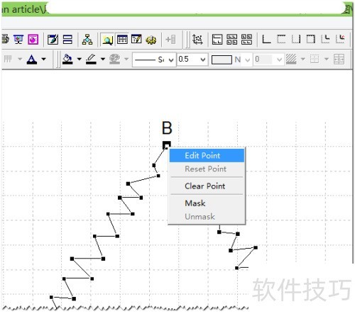 6、 在Origin软件中,通过一系列连续顶点可绘制一条线,线上所有数据点默认使用相同符号。若要为某个顶点设置独特标记,可对该点快速双击两次,随后选择Edit Point选项进行个性化调整。