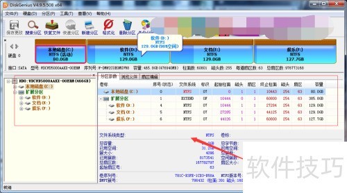 2、 打开Disk Genius分区工具界面,选定要检测和修复坏道的磁盘即可开始操作。