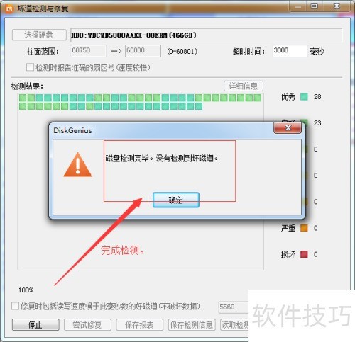 5、 等待Disk Genius完成磁盘检测后,将展示检测结果。