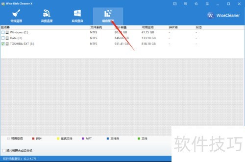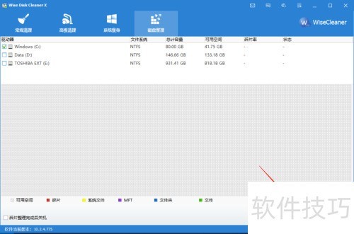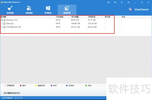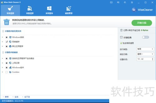 1、 Wise Disk Cleaner X的主界面展示磁盘清理功能。
