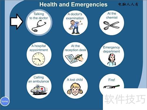 1、 进入软件首页后,点击左下角的健康与突发事件选项。