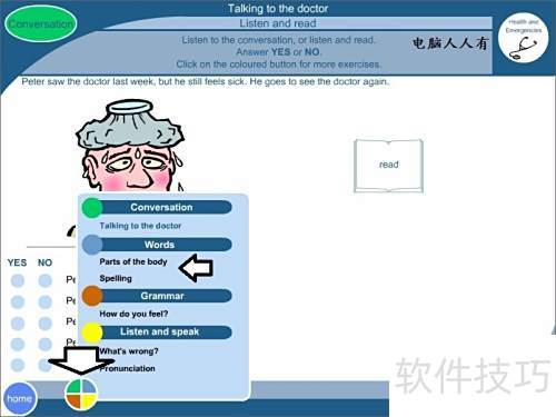 3、 按下四个颜色的按键,然后在单词分类里找到身体部位选项。