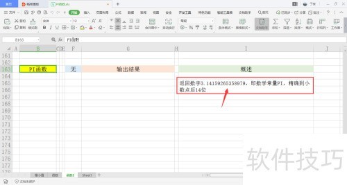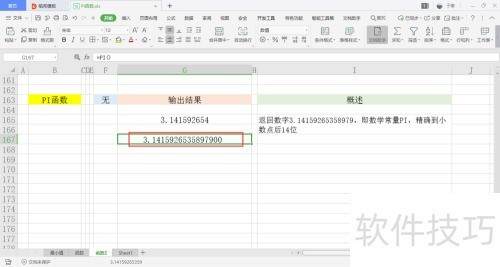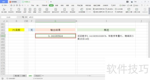 此函数返回数学常量π,值为3.14159265358979,精确至小数点后14位。