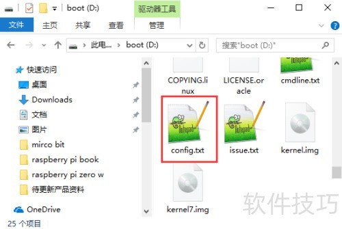 2、 将已烧录树莓派系统的SD卡通过读卡器接入电脑,找到并打开其根目录中的config文件。