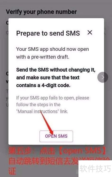 5、 点击OPEN SMS,将自动跳转至短信验证页面。