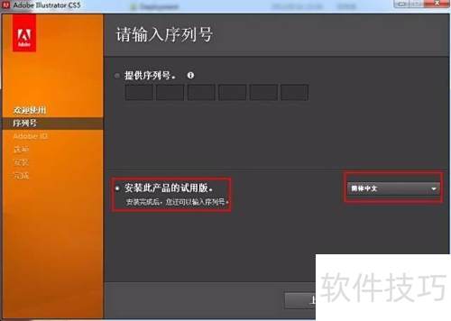 4、 选择简体中文,勾选试用版安装,点击下一步。