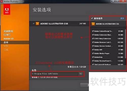5、 在右侧组件框中选择所需安装的组件,根据个人需求自定义安装路径,最后点击安装即可。