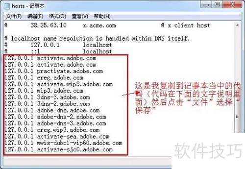 11、 将代码粘贴至记事本末尾,参照图示格式,完成后点击文件菜单中的保存选项。