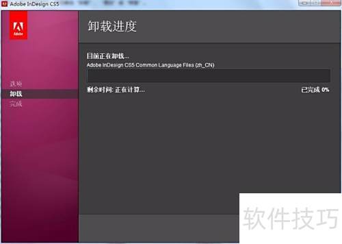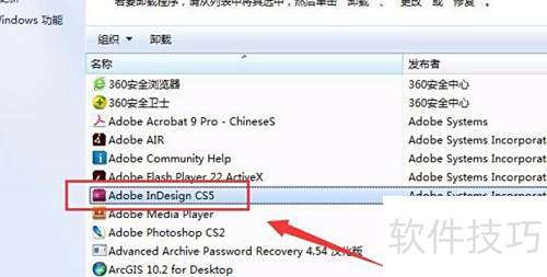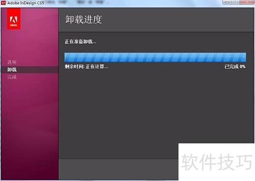 4、 在卸载程序界面中,找到InDesign CS5,右键点击并选择卸载,随后卸载程序将自动运行,操作步骤所示。