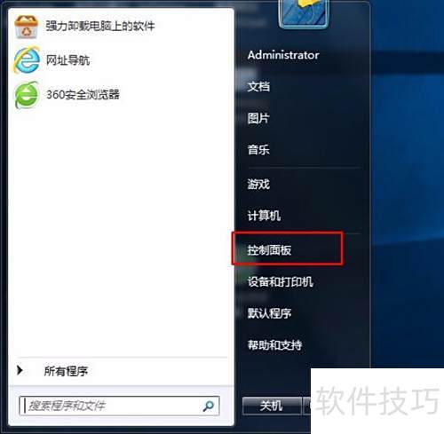 2、 首先,点击电脑桌面右下角的程序按钮,打开面板后找到并点击控制面板,即可进入相应设置界面,具体操作所示。