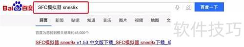 2、 打开浏览器访问百度,搜索SFC模拟器 snes9x即可找到相关资源。