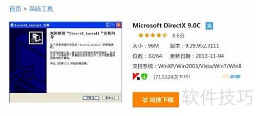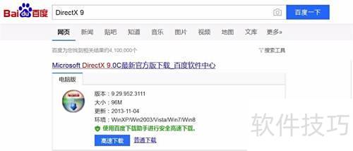 3、 在浏览器中访问百度,搜索DirectX 9,即可在百度软件中心找到该程序并下载,所示。
