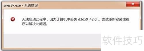 今天下载了电脑模拟器打算玩SFC游戏,启动时却提示无法启动此程序,因为计算机中丢失 d3dx9_42.dll,应该是缺少必要的运行库文件,导致程序无法正常运行。