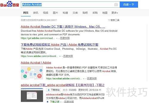 1、 首先下载安装包,百度搜索Adobe Acrobat,找到对应版本并下载即可。