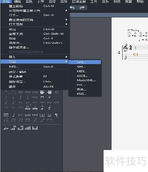 5、 Guitar Pro7可导出多种格式,包括GPX、GP5、MIDI、MusicXML、PDF及PNG,方便用户在不同场景下使用乐谱文件。