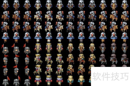 17、 当角色处于静止状态时,默认会呈现立正姿态。这样一来,VA角色的行走图结构便由原本的3行4列扩展为4行4列。由于VA引擎默认最多仅支持4×4的图案排列,若想使用更多帧数,例如8×4的格式,则需要另行调整相关设置。不过考虑到实际应用中很少会用到5×4以上的结构,这部分改动可能并不常用。本文暂时先介绍到这里。值得一提的是,虽然行走图已改为4×4,但在游戏启动瞬间,角色初始动作仍会短暂调用第一帧图案,尽管系统会立即修正,但这一细节仍略显不够完美。
