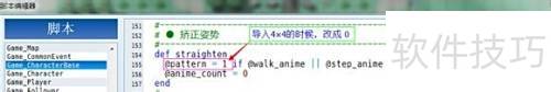 12、 将代码中的数字从3改为4后运行游戏,角色的两条腿完全伸展开,动作显得更加自然流畅。不过松开按键时,角色的静止画面仍有些不协调。针对这一问题,需要分别观察VA与XP的单帧行走图,再按照VA的默认格式进行排列,以便进一步优化静止状态的表现效果。