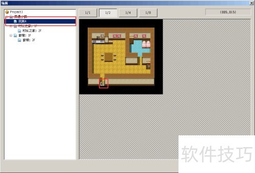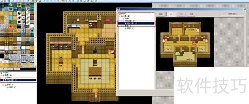2、 选择一张外观地图和若干内部地图,选定后进入事件编辑模式,设置玩家初始位置,具体操作可参考之前的经验说明。